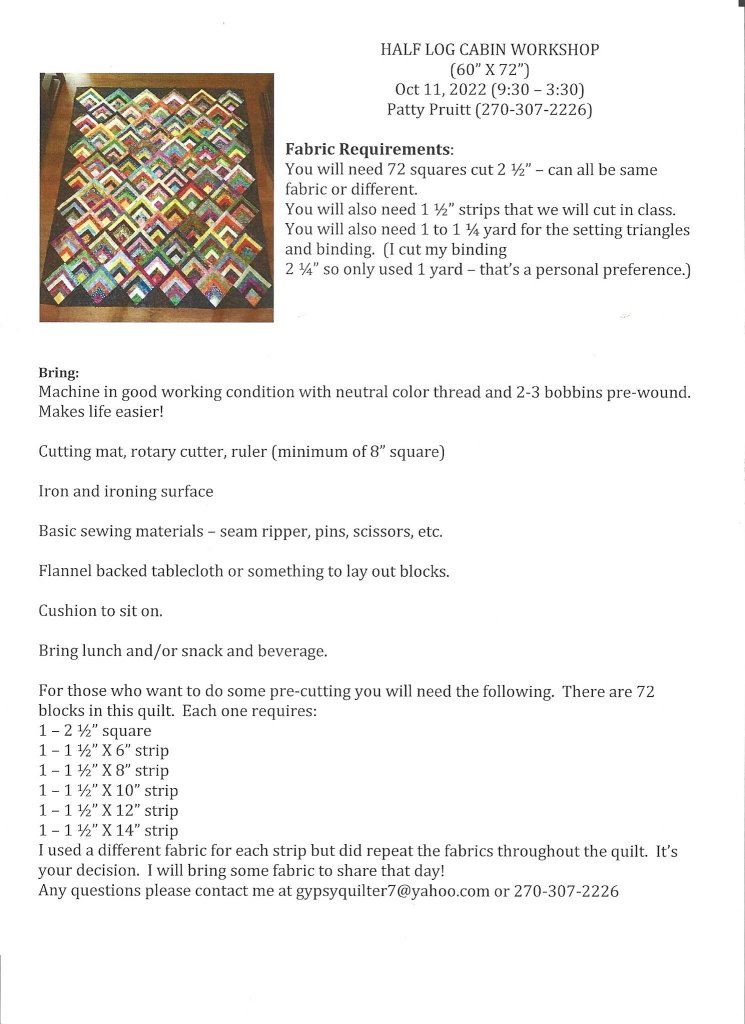 October 2022 meeting & Half Log Cabin Workshop