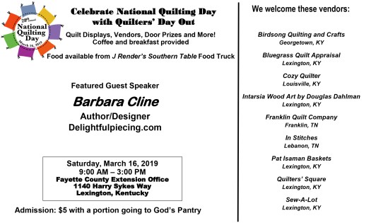 See or download a one-page poster for Quilters Day Out (TBD)